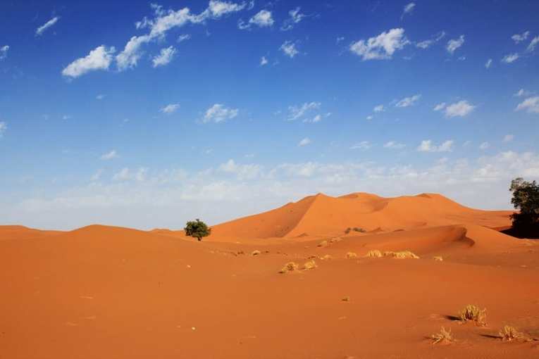 Then head south to Midelt, and on to the stunning Ziz Valley where you will see valleys and oasis filled with date palms as far as the eye can see. Berber villages and casbahs will take over the view as you head through Rissini and into Merzouga. Take your camels into the dunes and Spend the night in a luxury desert camp with your dinner and breakfast.