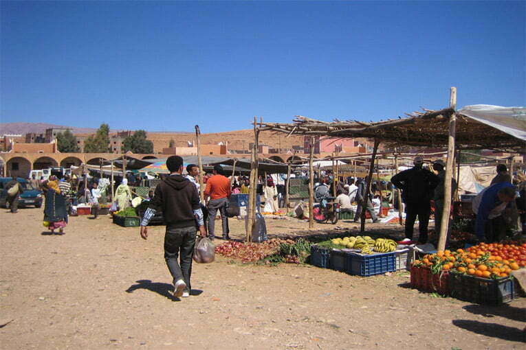 After breakfast, we go south, through the Saghro mountains rang to the village of N’Kob for lunch with a local Berber family. From here our route takes us to the Dra’a Valley, which we join at Tansikht and where we turn south to Zagora. The road follows the ancient caravan route between the Dra’a River and the mountains and gives a view of the gardens and kasbahs in the valley. In Zagora we stop for dinner and a night’s rest in a hotel/riad.